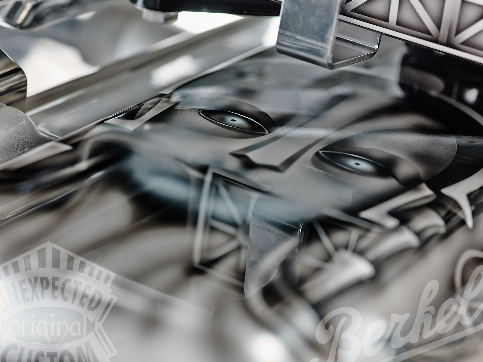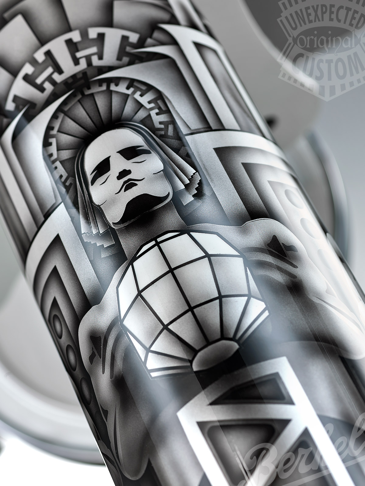 The bottom of the painting is in mother of pearl. A cinematic reflection on the black & white of history.
